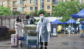5月5日上午不到七点,校园南门,老师们就已经“全副武装”,用严谨的态度、温暖的关怀迎接新学期第一批返校复学的同学。