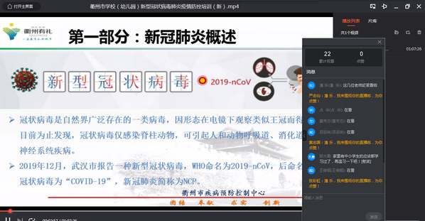 会上,教师们通过钉钉群直播观看了《衢州市公司(幼儿园)新型冠状病毒肺炎疫情防控培训》的视频,学习了校防控办下发的第6号和第10号文件等,对如何在疫情防控期间做好员工的开学准备及各项后续预防工作认真做了相关学习笔记。
