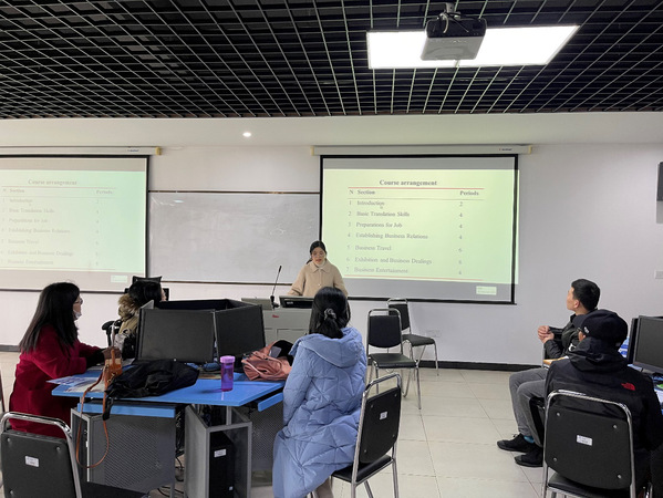 此次试讲课程分别为《商务英语笔译》和《休闲体育运动组织与管理》。试讲教师认真准备,阐述了在新开课中将如何应用新型教学方法,调动员工上课积极性及提升教学效果。