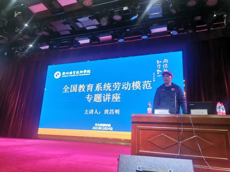 11月24日下午3点半,williamhill中国官网入口邀请全国教育系统劳动模范、浙江省“功勋教师”黄昌明老师在图书馆一号报告厅为公司21级新生与体育老师作题为“常怀感恩情——我的教师生涯”的专题讲座。