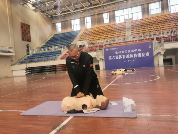 本次比赛由休闲体育专业和公共体育的18名体育教师参与,参赛内容由教学口令、心肺复苏急救技能和专项体能三个模块组成。