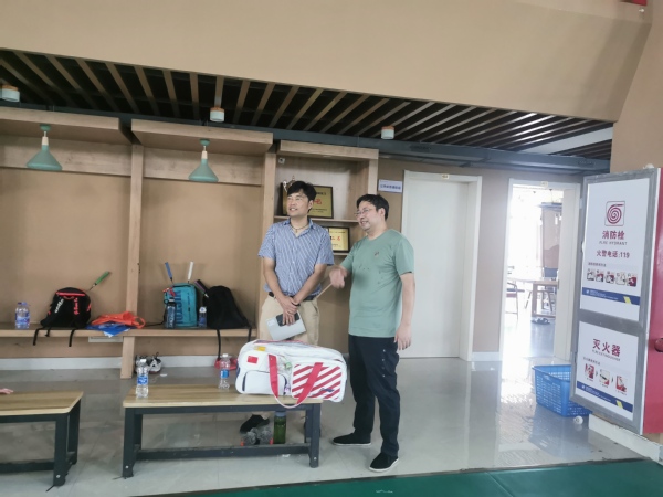 在羽毛球馆,郭大勇经理与暑期在校开展集训的衢州市青少年羽毛球队领队黄瑞中、主教练蒋国良开展座谈,郭大勇经理首先对集训队的到来表示欢迎,随后双方就目前训练情况、后勤保障等工作开展交流,郭大勇经理表示将全力以赴配合集训队做好训练工作,同时叮嘱集训队要严格落实公司相关防疫措施,在做好训练的同时确保疫情防控措施落实落细。