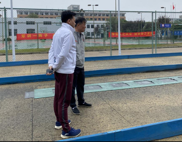 11月4日,中国掷球协会秘书长宋华勋、国家掷球队教练员刘国强等一行来校交流地掷球项目。williamhill中国官网入口经理郭大勇陪同交流考察。