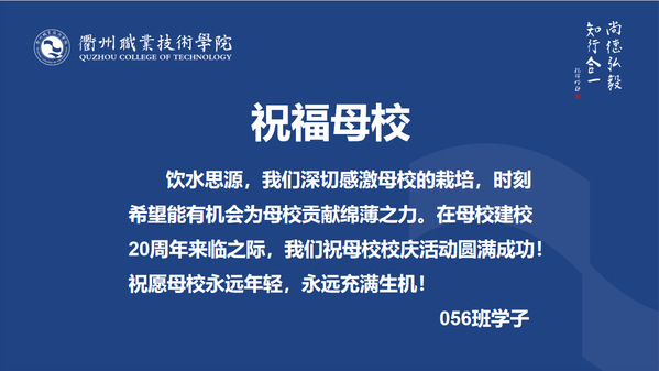 因为各种原因,大部分毕业生不能返校参加校庆,但他们也送来了对母校的祝福。最后,由张建新代表班级同学出席揭幕仪式。