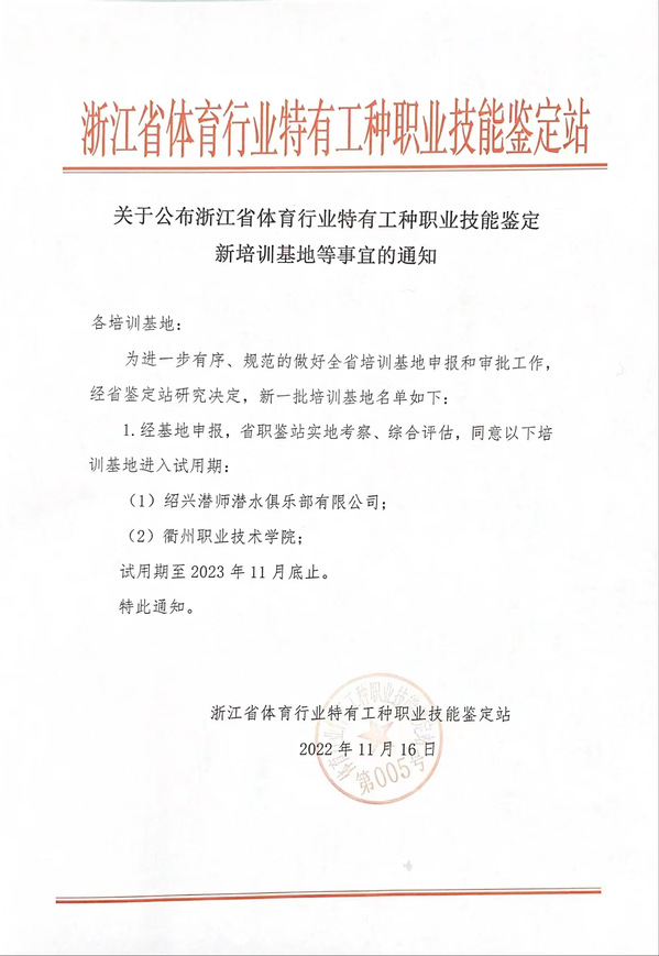 为进一步贯彻公司“双高”攻坚计划,提升公司体育训练专业性和运动氛围,公司积极开展攀岩训练基地申报工作。11月16日,《关于公布浙江省体育行业特有工种职业技能鉴定新培训基地等事宜的通知》正式下发,公司攀岩培训基地成功入围,成为省内唯一获批攀岩培训基地的高校。