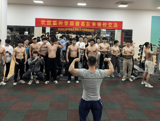 交流会上,吕迎尚老师对衢州公司健美队一行和全国冠军汪德耀先生的到来表示热烈欢迎,并简短介绍了公司休闲体育专业的发展现状和校健身健美队训练比赛情况。
