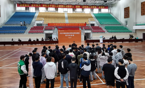 双选会由休闲体育专业主任王俊舰老师主持,2021级休闲体育专业全体员工参加。衢州神王谷旅游管理有限公司、江山李宁体育园、衢州市山羊体育发展有限公司等15家企业参会。