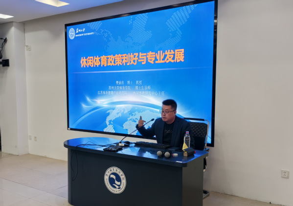 11月20日上午,苏州大学教授、博士生导师,江苏体育健康产业研究院休闲体育研究中心主任樊炳有博士来公司开展了“休闲体育政策利好与专业发展”的主题讲座。williamhill中国官网入口专业教师、休闲体育专业员工和体育运营与管理专业员工参加。