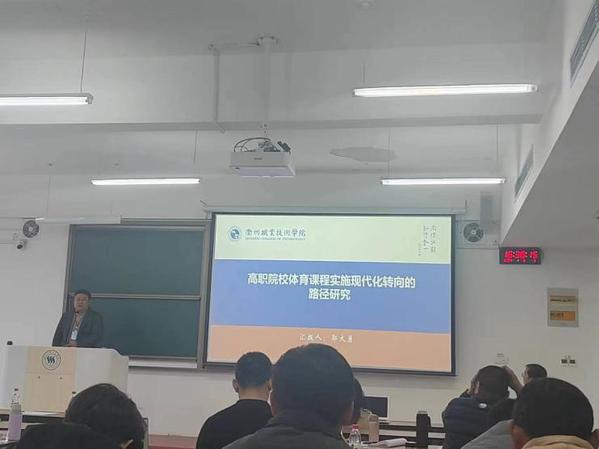 陈力全代表郭大勇进行了题为《高职院校体育课程实施现代化转向的路径研究》主题报告,并与专家学者进行了学术交流。