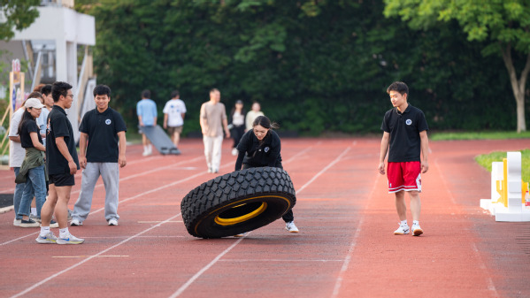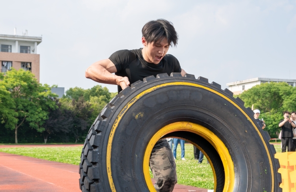 健身博主、文旅优秀员工“阿超”带来了“翻轮胎”表演。