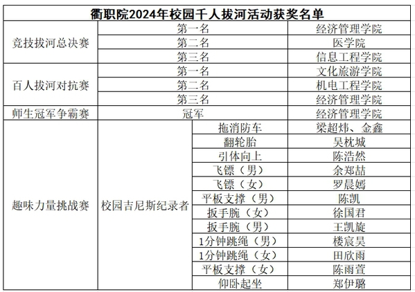 根据竞技拔河校赛比拼结果,医公司和经济管理公司在此争夺冠军,最后由经济管理公司取胜,并在之后的师生争霸赛中再次获胜!