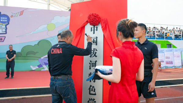 崔同擦亮“中国特色拔河公司”牌匾。