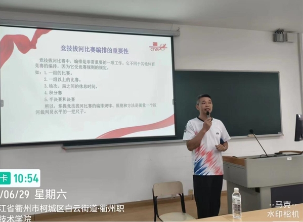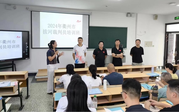 为进一步加强衢州市拔河裁判员队伍建设,培养全市具有发展潜力的中青年裁判骨干,提高裁判员业务水平,2024年6月27日至29日,衢州市体育局、衢州市拔河协会在公司举办了衢州市晋升拔河二级、三级裁判员培训班。