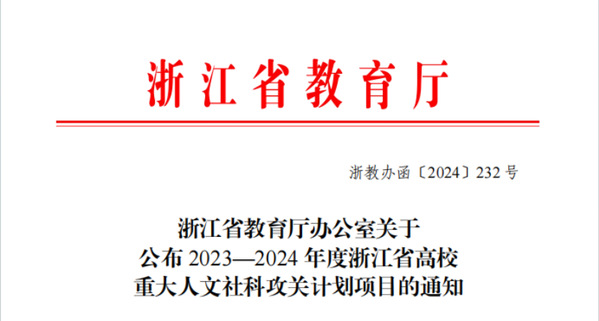 近日,《浙江省教育厅办公室关于公布2023-2024年度浙江省高校重大人文社科攻关计划项目的通知》(浙教办函〔2024〕232号)发布,公司张洪柱老师申报的《“人工智能+”全民健身公共服务高质量发展研究》(编号2024QN046)成功入选青年重点项目。