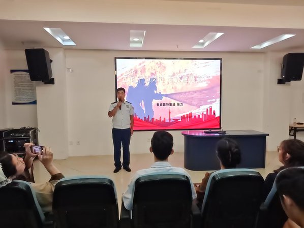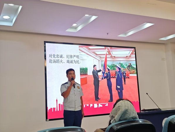 故事会开始前,大家共同观看了短片《青春向光》。短片生动展现了新时代青年投身中国式现代化建设、勇毅挺膺担当的磅礴力量。这份担当,在无数平凡岗位的默默坚守中闪耀,尤其在那抹守护人民安全的“火焰蓝”里,燃烧得格外炽烈与纯粹。