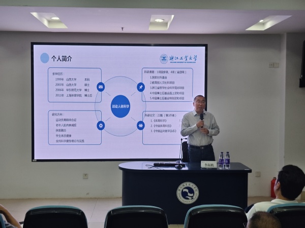 6月9日下午,浙江工业大学体育军训部副主任李海鹏教授、体育军训部杨冬钧副教授来williamhill中国官网入口交流指导。李海鹏作了题为“问渠那得清如许,为有源头活水来——简谈‘科研课题’申报工作”的科研讲座。williamhill中国官网入口经理郭大勇,副经理黄志国、彭晓倩以及公司中青年教师参加。