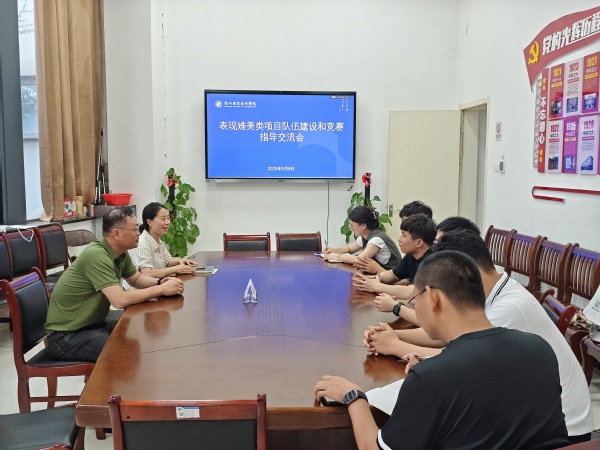 讲座后,杨冬钧副教授与公司相关教师在文旅一楼会议室进行了表现难美类项目队伍建设和竞赛指导交流会。杨老师结合自身多年在队伍建设和竞赛指导方面的丰富经验,从选材、队伍培养、团队建设等多个角度进行了深入分享。在交流环节,杨老师与在座教师就竞赛指导、赛事承办等内容进行了讨论。