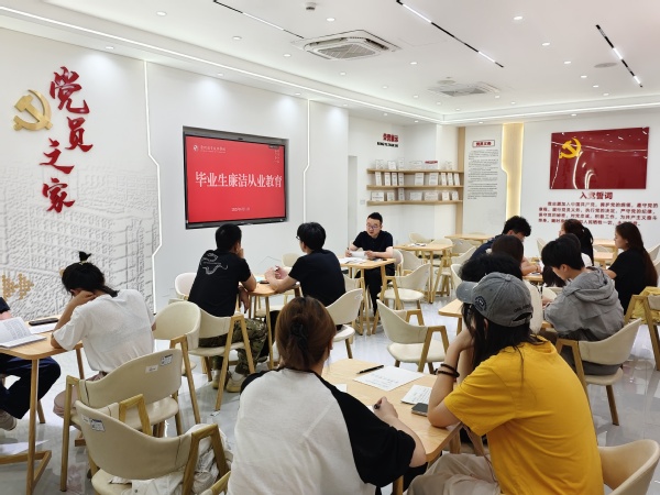 休闲体育党支部书记、专业主任王俊舰以“学八项规定,筑牢廉洁从业根基”为题,为全体毕业生党员讲授专题党课。党课聚焦深入贯彻中央八项规定精神学习教育和廉洁从业要求,引导毕业生党员深刻认识严守纪律规矩是共产党员的终身课题。他结合当前形势和毕业生即将步入社会的实际,着重强调了在未来的工作和生活中要时刻牢记初心使命,永葆政治本色,在新的岗位上奋勇拼搏,砥砺前行。